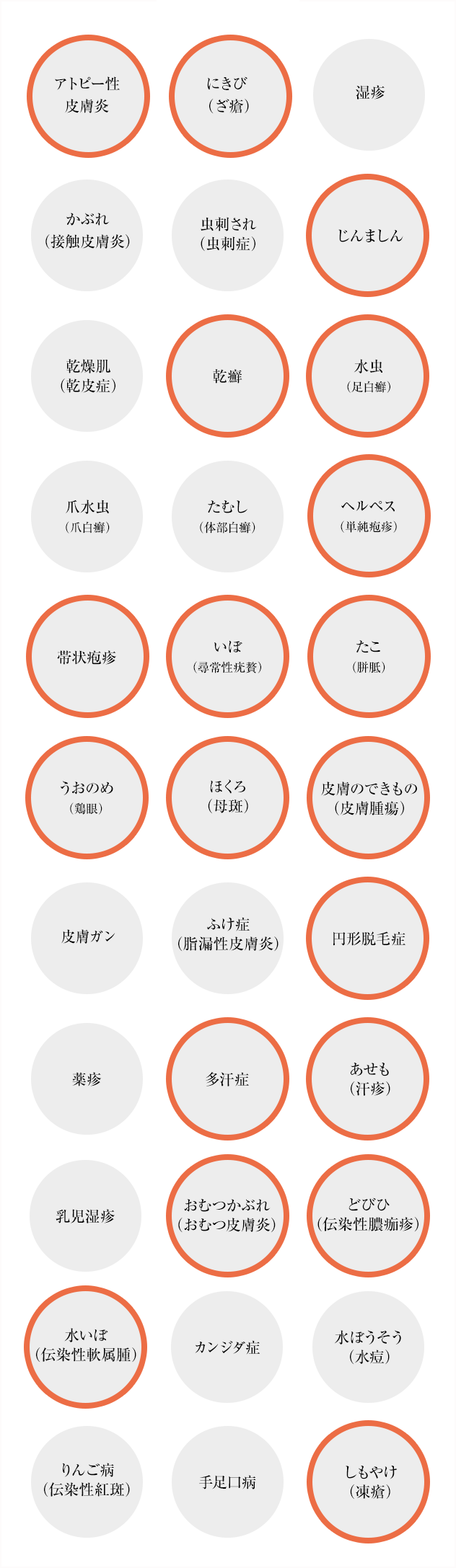 皮膚の病気は、急性、慢性があります。当院では皮膚科専門医として培った豊富な知識と経験をもとに、視診をもとに触診、血液検査、ダーモスコピー検査、顕微鏡検査、パッチテスト、アレルギー検査、皮膚生検などを組み合わせ、的確な診断と治療行います。